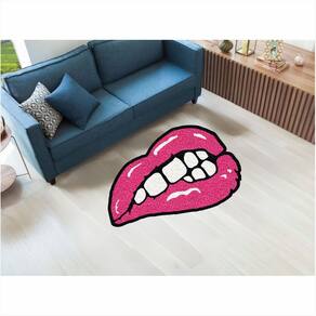 Tapete Capacho Boca No Formato 80X50 cm Para Decoração. - Cor: Bordô