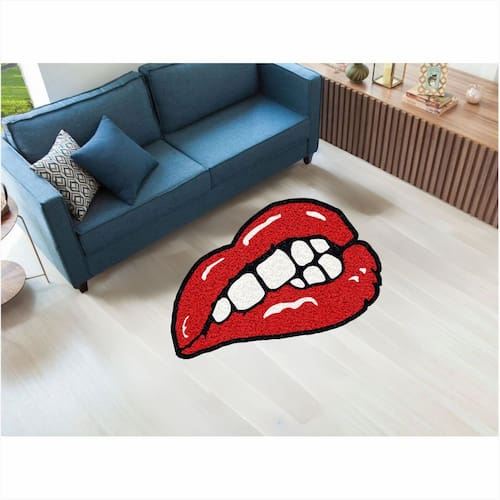Tapete Capacho Boca No Formato 80X50 cm Para Decoração. - Cor: Vermelho
