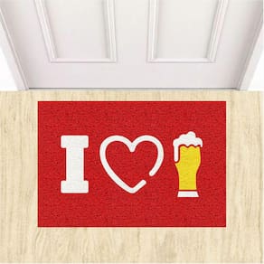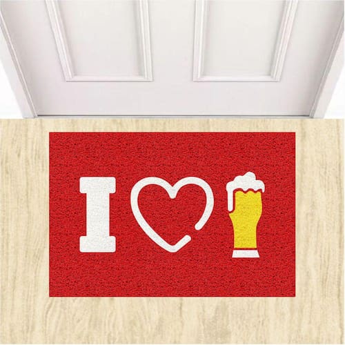 Tapete Capacho Decorativo I Love Chopp Eu Amo Cerveja 60X40. - Cor: Vermelho
