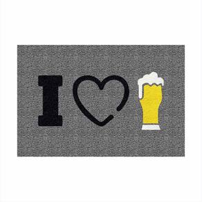 Tapete Capacho Decorativo I Love Chopp Eu Amo Cerveja 60X40. - Cor: Cinza