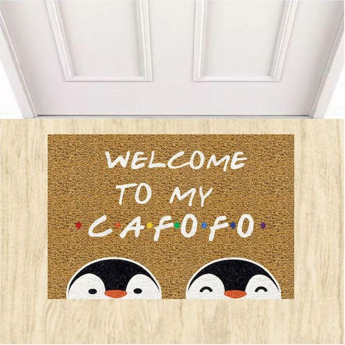 Tapete Capacho Divertido Welcome To My Cafofo Pinguins LGBT. - Cor.: Ouro