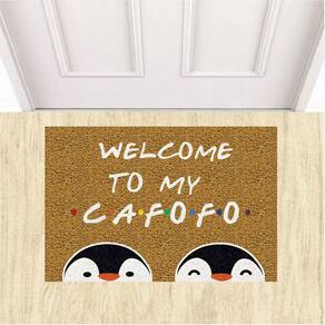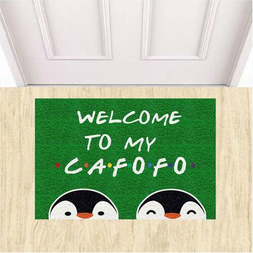 Tapete Capacho Divertido Welcome To My Cafofo Pinguins LGBT. - Cor: Verde bandeira