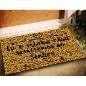 Tapete Capacho Eu E Minha Casa Serviremos Ao Senhor 60X40 Ouro O tapete capacho possui formato retangular de face única pintada, indicado para todo tipo de ambiente, seja interno ou externo, ideal para entradas de portas. Com base antiderrapante vai tornar a decoração de sua casa mais moderna e acolhedora. 100 % PVC Comprimento: 60cm Largura: 40cm Espessura: 12mm- Variedades de cores - Lavável - Durável - Antiderrapante - Antichamas - Resistente ao auto fluxo Ean: 2960000511334