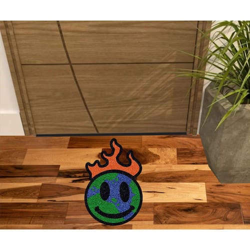 Tapete Capacho Vinil com fibras entrelaçadas e costado emborrachado com arte pinta em tinta vinílica especial.
