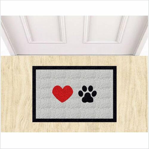 Tapete Capacho Pata Coração, Medida Porta. Cor Prata