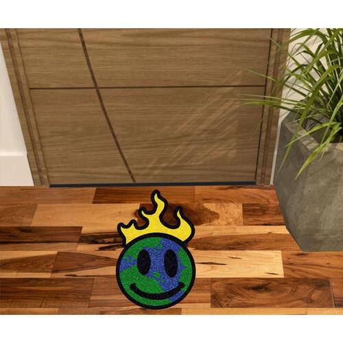 Tapete Capacho Vinil com fibras entrelaçadas e costado emborrachado com arte pinta em tinta vinílica especial.