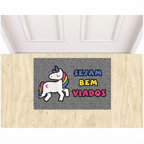 Tapete Capacho Unicórnio Seja Bem Viados Lgbt 60X40 cm.