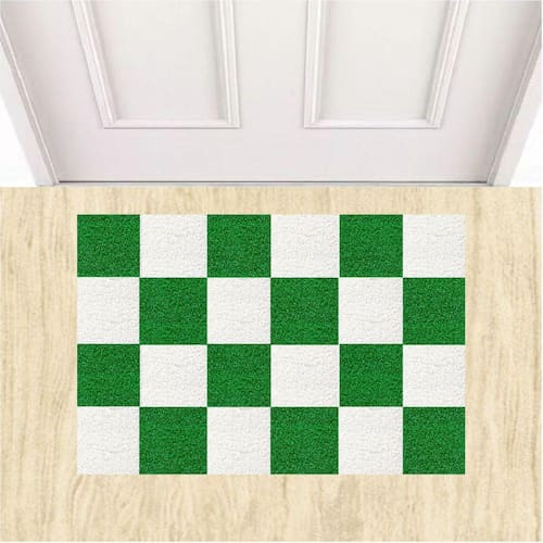 Tapete Capacho Vinil Tabuleiro de Xadrez Decorativo 60X40cm. - Cor.: Verde bandeira