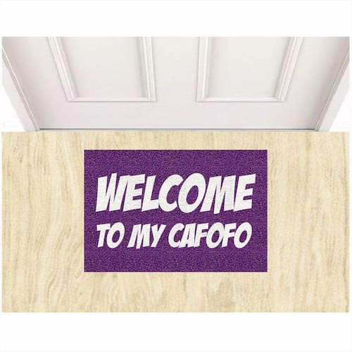 Tapete Capacho Welcome To My Cafofo 60X40 cm com Variaçoes. - Cor: Roxo