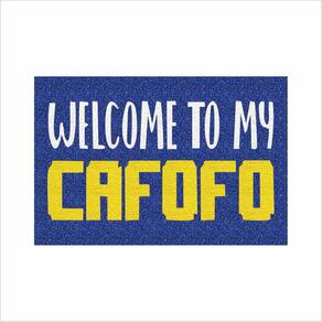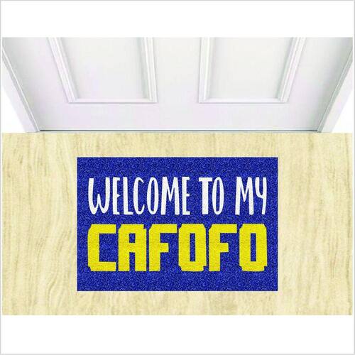 Capacho Vinil com fibras entrelaçadas e costado emborrachado com arte pinta em tinta vinílica especial.