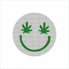Tapete tipo Capacho Vinil com fibras entrelaçadas e costado emborrachado com arte pinta em tinta vinílica especial.