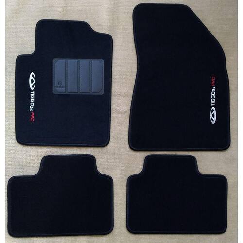 JOGO COM 4 TAPETES EM CARPETE, BASE EM PVC NA COR PRETA