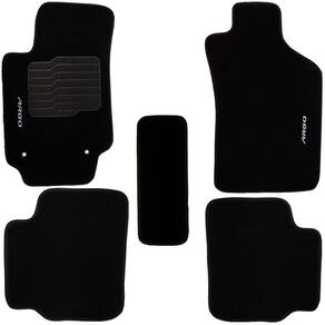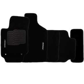 Especificações - Carpete agulhado de 05 mm em fibra de PET e resina sintética. - Acabamento em viés preto - Sistema de segurança aderente - Base resinada. - Bordado com a i d e n t i f i c a ç ã o do veículo - Modelagem específica