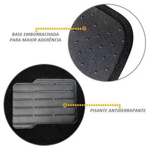 Fabricado em carpete automotivo , material já conhecido pela excelente qualidade e resistência, Além da sua base emborrachada para dar mais fixação no assoalho do veiculo.