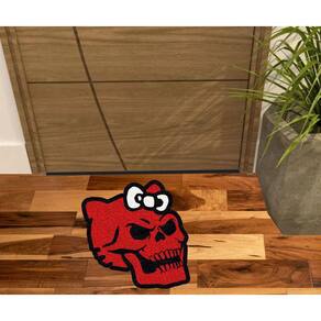 Tapete tipo Capacho Vinil com fibras entrelaçadas e costado emborrachado com arte pinta em tinta vinílica especial.