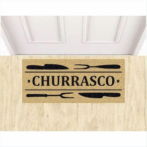 Tapete Capacho Vinil com fibras entrelaçadas e costado emborrachado com arte pinta em tinta vinílica especial.
