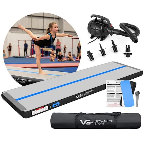 Tapete Colchão Ginástica Inflável 5 Metros com Bomba Elétrica VG Plus Preto e Azul 220v