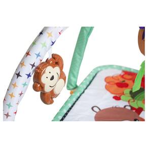 Os divertidos animais fazem companhia quando o bebê brinca deitado e os brinquedos podem ser retirados para brincar em outras posições!Tapete acolchoado de alta qualidade2 arcos macios que se dobram facilmente para armazenamento fácil e prático3 brinquedos de diferentes formatos e texturas para estímulo tátil (1 brinquedo musical com 10 minutos de música!)