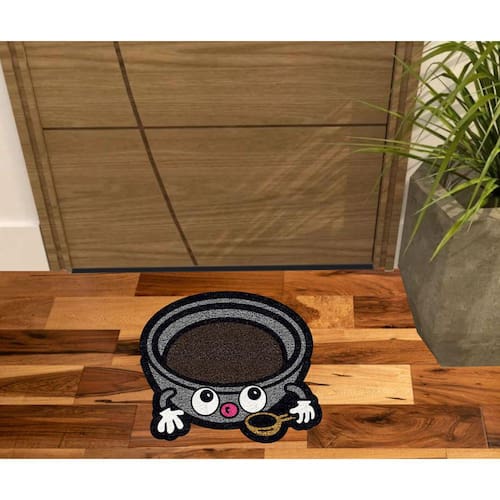 Tapete Capacho Vinil com fibras entrelaçadas e costado emborrachado com arte pinta em tinta vinílica especial.