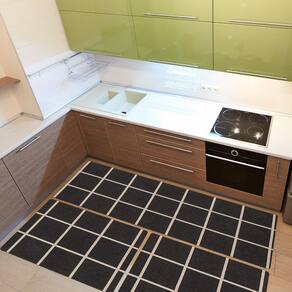 Tapete Cozinha 3 Peças Jacquard Antiderrapante Grid Maroom