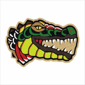 Tapete tipo Capacho Vinil com fibras entrelaçadas e costado emborrachado com arte pinta em tinta vinílica especial.