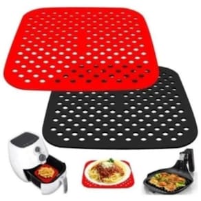 Já reparou que ao usar a fritadeira air fryer alguns alimentos grudam no fundo Por este motivo, sabemos que você precisa de mais agilidade no seu dia a dia para gastar o seu tempo com o que realmente importa. Evite que suas receitas grudem na grade da fritadeira pois para retirá-las corre o risco de arranhar seu acabamento interno e fazer com que ela perca a sua eficiência, além de lentamente liberar pequenos restos de teflon na comida, sendo prejudicial a saúde. Feito com material de alta qualidade, mesmo material utilizado em formas para bolo, 100% silicone de uso na cozinha. Flexível e resistente, aguenta temperaturas de até 230ºc não aderente, evita que os alimentos grudem, além de ser super fácil de lavar. Proteção em silicone para fritadeira elétrica e air fryer com o objetivo de proteger o desgaste e comprometimento do eletrodoméstico. Permitido o uso em: - micro-ondas - forno - lava-louças - congelador características: - antiaderente - até 230ºc - compatibilidade universal