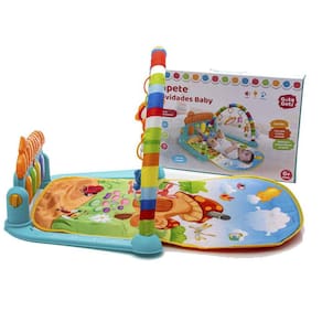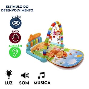 Tapete de Atividades Infantil Educativo com Casinha Musical Tapete De Atividades Interativo Bebe Piano Musical InfantilO tapete Infantil de Atividade é colorido e estimula seu bebê à ficar sentado e proporciona maior conforto quando ele estiver de bruços. Os brinquedos são fofinhos e coloridos, cheio de texturas que estimulam o tato e a coordenação motora, pois conta com 5 brinquedos diferentes. Possui luzes e sons divertidos aprimoram as habilidades auditivas do seu bebê, graças ao seu teclado com várias melodias, além de proporcionar a criatividade e percepção visual. Principais Características: Idade Recomendada: +0 até 18m O piano multifunção acompanha o crescimento do bebês com músicas e interação ; Percepção Visual: Reconhecimento de diferentes formas e cores; Desenvolvimento Tátil: Os brinquedos pendurados e o piano na base promovem o desenvolvimento muscular dos braços e pernas do bebê; Coordenação Motora: Aos 6 meses o bebê já começa a ficar sentado, treinando a capacidade motora e flexibilidade com os brinquedos; Desenvolvimento Auditivo: As teclas do piano tocam diferentes sons e melodias, estimulando a audição dos pequenos. Dados Técnicos: Funções de Liga / Desliga Dimensões do Produto Aberto AxLxC : 42 x 60 x 75 cm Embalagem contendo: 1 Tapete, 1 Arco, 1 Piano Multifunção e 5 Brinquedos, sendo 4 mobiles e 1 espelho. Necessário 2 Pilhas AA Não inclusas Marca: GUTA GUTIRegistro: 005.404/202 Inmetro
