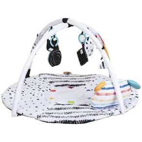 Tapete Kiddo projetado para ajudar no desenvolvimento. Estofado extra, cores e sons estimulantes, personagens divertidos para o seu bebê interagir, 3 brinquedos apropriados para a idade (chocalho, rangedor e dobra), um espelho seguro para bebês para autodescoberta, 2 anéis táteis, um travesseiros de 2 lados, 2 arcos para suporte com bandeiras, arcos removíveis para o uso do tapete na fase sentado. O bebê pode ficar deitado de barriga para cima ou bruços.