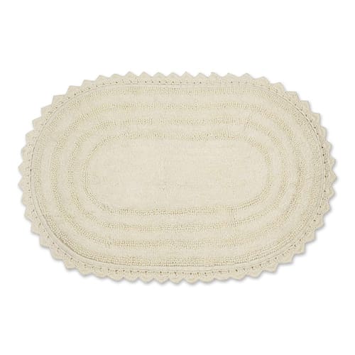 DII Coleção de crochê, tapete de banho reversível, grande oval, 53 x 86 cm, branco