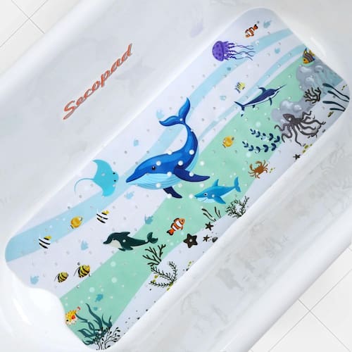 Tapete de banho para bebês Secopad Cartoon Non Slip 40 cm x 100 cm azul