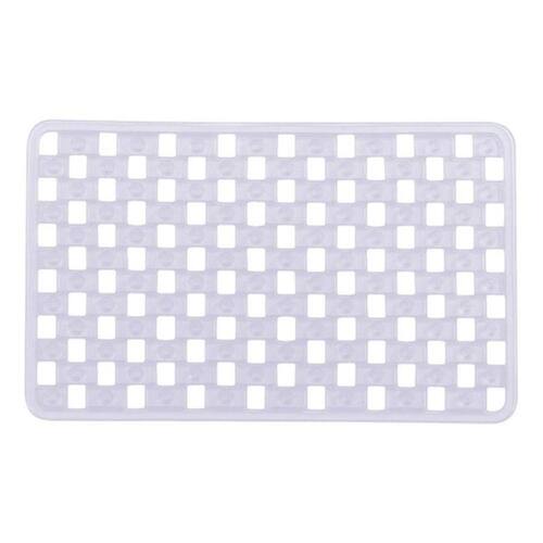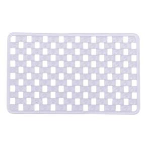 Este tapete evita derrapagens e escorregões durante os banhos. Com ventosas que se fixam ao piso frio, permanece grudado mesmo quando molhado. Feito de plástico polipropileno transparente, possui formato retangular para cobrir uma área considerável no espaço do box.