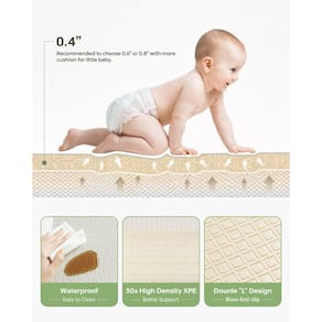 - [Várias especificações e tamanho grande]: nosso tapete de bebê para piso projetado em vários tamanhos, 127 cm x 198 cm e 177 cm x 198 cm oferece espaço suficiente para o seu pequeno explorar, brincar e tirar uma soneca. Somos a única marca que oferece tapetes de 1,5 cm e 2 cm de espessura na Amazon, mais especificações para você escolher.