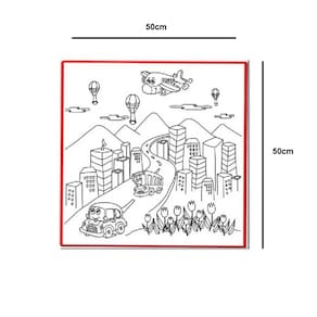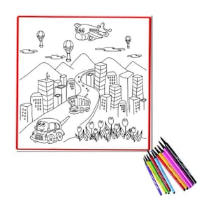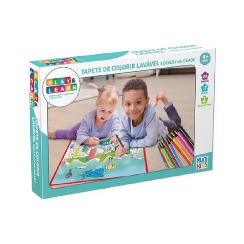 A brincadeira de pintar e colorir é muito mais divertida e colorida! São 6 cores de canetas para escolher, identificar os veículos da cidade e pintar do jeito que quiser. O tapete é lavável e permite brincar quantas vezes quiser! Tapete com tecido macio e seguro, produzido em materiais não-tóxicos e desenvolvidos para crianças, e as canetinhas possuem tinta lavável.
