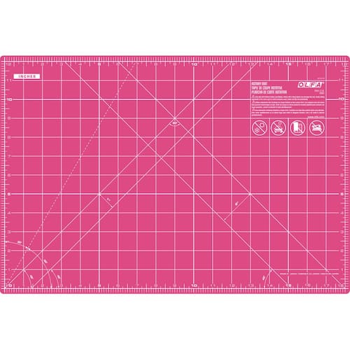 - TAPETE DE 12 POLEGADAS POR 18 POLEGADAS - Este tapete de corte rotativo tem 12 “x 18" e 1,5 mm de espessura. É perfeito para projetos de pequeno e médio porte. Ótimo para cortar várias camadas de tecido em tiras polarizadas, quadrados, triângulos e quadrar blocos.
