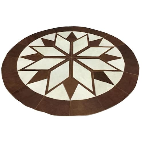 Tapete de couro de boi mandala medida: 2,0 m de diâmetro cor: caramelo / branco material: 100% em couro bovino, forro em tecido de nylon dublado com espuma de 3mm. Tipo de : pac via empresa correios. Os modelos, cores, acabamentos e tamanhos apresentados nos anúncios são meramente ilustrativos. Por se tratar de produto de origem animal, podem ocorrer pequenas variações de cor, tamanho e padrão. Tapetes de origem natural feitos manualmente podem sofrer variações de tamanho durante o processo de finalização e/ou acabamento. Cuidados com o seu tapete: limpeza: pode-se usar aspirador de pó, vassoura, e escova de mão, sem aplicar força excessiva. Evitar o contato do produto com tintas, vernizes e similares. Não recomendamos o uso de removedores sintéticos e abrasivos. Marca: Dumom Tapetes