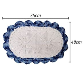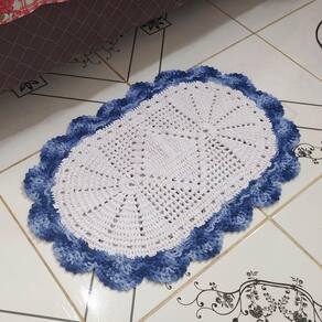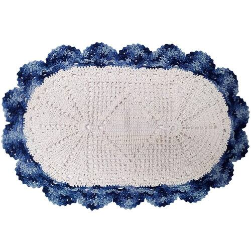 Tapete de crochê barbante oval 75cm branco com borda azul para banheiro cozinha sala quarto lindo artesanal decoração tapete de crochê: