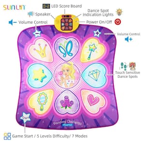 🎶?DURÁVEL E ANTIDERRAPANTE?Feito de material de vinil resistente, o SUNLIN Purple Dancing Challenge Playmat passou nos testes padrão CPSIA e ASTM. É atóxico e acolchoado macio, fácil de limpar. E é de excelente qualidade para durar até dançar e pular sem parar. Os padrões nas costas foram projetados para serem antiescorregadios. ,