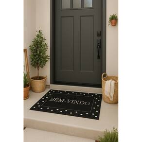 Tapete De Entrada 100% Poliéster Base Látex Antiderrapante 60x40cm Bem-Vindo Poá -