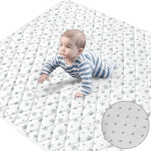 Por que escolher o tapete de gatinhar Moonsea para bebês? Você ainda está preocupado em encontrar um tapete de cercadinho adequado para o seu bebê? Estamos aqui, somos especializados em têxteis domésticos como fabricante há mais de dez anos. Nosso objetivo é fornecer produtos de alta qualidade com custo razoável para nossos clientes. Informações sobre o nosso tapete de gatinho: Tecido: design adorável de padrão de estrela com tecido macio. Mais grosso e macio: este tapete acolchoado para engatinhar no chão do bebê com acolchoamento mais espesso e macio o torna perfeito para o seu bebê engatinhar ou para o seu filho brincar. Antiderrapante: o material antiderrapante na parte de trás do tapete de brincar para bebês oferece um pé seguro e um lugar seguro para o seu filho brincar. Extragrande: 198,5 x 139 cm, lavável na máquina. Presente perfeito: uma escolha de presente perfeita para chás de bebê, aniversários, ação de graças, aniversário e qualquer outra ocasião. Tapete de brinquedo Moonsea para bebês, sua escolha perfeita! - Adequado para cercadinho de bebê de 119 cm × 119 cm: Design especial para cercadinho de bebê de 117 x 111 cm. Ou use tapetes infantis como tapete de área, tapete de barraca infantil, tapete de tenda, tapete de casinha de brinquedo. Mantenha seu bebê longe do chão, deixe-o brincar feliz. - Dobrável e reversível: ao contrário de outros tapetes com muitas peças montadas, nosso tapete de brincar de 47x47 para cercadinho é uma peça única durável que é dobrável e fácil de embalar para economizar espaço com o estojo do tapete de jogo. Sem problemas com peças de quebra-cabeças! - Confortável e macio: este tapete de brincar para cercadinho de brinquedo de 117 x 111 cm é feito de esponja espessa de alta qualidade. Este tapete de brincar é macio e confortável, oferecendo amortecimento suficiente para pisos duros. - Antiderrapante: a parte de trás do tapete de brincar para cercadinho de brinquedo de 117 x 112 cm é feita de material antiderrapante, que oferece uma base segura e um lugar seguro para o seu filho brincar. - Moonsea Garantia: Como o tapete de cercadinho para bebês é embalado a vácuo, sugerimos que ele possa ser lavado ou suavemente colocado por alguns dias após a abertura para que ele retorne ao estado autêntico. A qualidade do tapete de rastejamento em que você pode confiar para que você possa comprar à vontade. Se houver algum problema com nossos tapetes de brinquedo para bebês e crianças, e podemos substituí-lo ou o dinheiro de volta sem desculpas.