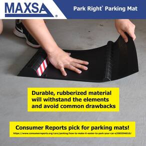 Tapete de estacionamento Maxsa 37358-RS Park Right 53.3 cm x 27.9 cm x 5.1 cm, preto - Estacione perfeitamente sempre: Garante que você estacione no mesmo local todos os dias, garantindo a proteção ideal para seu veículo, garagem e pertences | Escolha a cor do seu tapete de estacionamento preto, amarelo, vermelho - Fácil de usar: o tapete de estacionamento apresenta duas saliências de pneu para o motorista - uma primeira pequena colisão para que você saiba que você está no tapete e uma segunda grande colisão para parar seu veículo | Nosso plástico emborrachado dura mais e é mais durável do que os concorrentes - Colocação segura e fácil instalação: O tapete é projetado com fita antiderrapante, evitando qualquer movimento indesejado | Alinhe onde você deseja que seu veículo pare, retire a fita antiderrapante e pressione firmemente o tapete de estacionamento, agora você está instalado - Tamanho único: Com dimensões medindo 28 cm de largura e 54,5 cm de comprimento, este tapete de estacionamento foi projetado para caber em todos os veículos de tamanho de passageiros, como caminhonete, sedans, minivans, trailers, carrinhos de golfe, cortadores de grama e muito mais - Visibilidade aprimorada com fita refletiva: a fita reflexiva oferece alta visibilidade, facilitando a navegação no espaço da garagem e estacionamento | Chega de bater na porta, bater em bicicletas, gramado, equipamentos esportivos ou qualquer outro item em sua garagem - Mantenha sua garagem arrumada: diga adeus à bagunça e umidade com a bandeja coletora embutida, projetada para manter sua garagem seca e limpa, contendo lama, neve, água ou sujeira de chegar ao chão