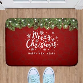 Tapete de Natal Vermelho Emborrachada Merry Christmas - Base emborrachada antiderrapante: Látex; - Pode ser lavada manualmente ou a seco; - Design moderno, leve e fácil de transportar; Marca: Novadecora