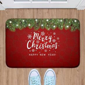 Tapete de Natal Vermelho Emborrachada Merry Christmas - Base emborrachada antiderrapante: Látex; - Pode ser lavada manualmente ou a seco; - Design moderno, leve e fácil de transportar; Marca: Novadecora