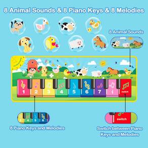 ?Fácil de usar e transportar?Insira 3 pilhas AA (não incluídas) na caixa e ligue, toque no adorável animal para emitir sons de animais e toque nas teclas numéricas para fazer sons de piano ou alternar entre teclas de piano e melodias. O tapete do piano de chão deixará os bebês muito animados e os manterá ativos. É fácil de dobrar e transportar. O tapete musical é 39* 14 polegadas (100* 36 cm).