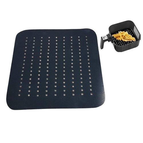Esse tapete de teflon possui medidas aproximadas de 26 cm x 26 cm, sendo compatível com a maioria das air fryers de 8 litros. Antes de fazer a compra, recomendamos que você verifique o diâmetro interno do cesto da sua air fryer para garantir o encaixe perfeito.