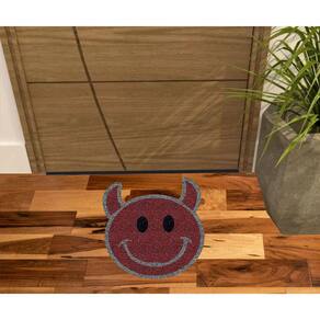 Tapete Capacho Vinil com fibras entrelaçadas e costado emborrachado com arte pinta em tinta vinílica especial.