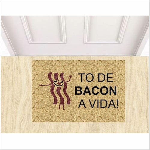 Tapete Divertido To de bacon com a vida! 60X40 cm Decorativo - Cor: Bege