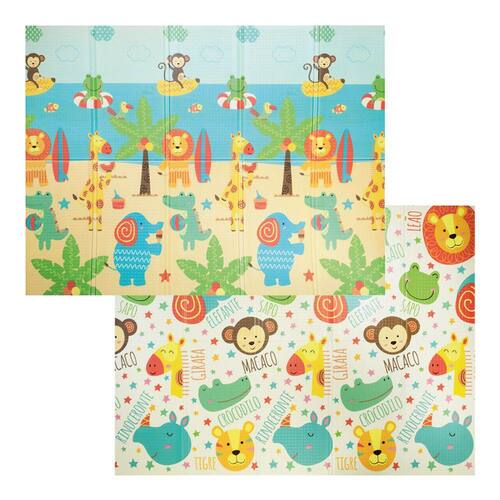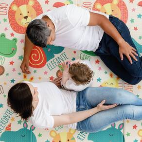 Um tapete grande, macio e colorido! Tapete de atividades com 1,50 cm x 200 cm de espaço para as crianças brincarem à vontade com conforto e segurança, além de proteger do contato direto com o chão. Feito de material macio e impermeável, o tapete é fácil de limpar e guardar. Formato grande, conta com estampa dupla face