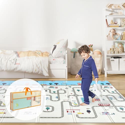 Este tapete versátil estimula o desenvolvimento cognitivo e físico. Se o seu pequeno está engatinhando, sentado ou brincando, ele encontrará inspiração em cada lado deste país das maravilhas educacional! Vantagens do nosso produto: ensinar às crianças o alfabeto, aprender números, aprender animais, desenvolver habilidades motoras finas Medindo o crescimento de uma criança. - ? Dupla face: o tapete tem dois lados com designs diferentes e informações úteis. Um lado tem carros e estradas, e o outro lado tem o alfabeto com animais. - ? Certificado e hipoalergênico: feito de materiais seguros que não causam alergias. - ? Isolamento térmico: retém o calor, tornando-o confortável para engatinhar e brincar no chão. - ? Dobrável e transformável: fácil de dobrar e desdobrar, permitindo que você armazene convenientemente. - ? Auxilia no desenvolvimento: ajuda as crianças a desenvolver habilidades motoras, coordenação e promove o crescimento. - ? Lado da exploração da cidade: de um lado do tapete, uma paisagem urbana vibrante se desdobra. Arranha-céus, pontes e ruas movimentadas criam um ambiente urbano animado. Uma criança curiosa pode explorar esta cidade, descobrindo diferentes pontos de referência e veículos. A imaginação da criança pode voar enquanto ela se vê como pequenos aventureiros urbanos, navegando pelas ruas, cruzando pontes e espiando pelas janelas. - ? Alfabeto e lado animal: virar o tapete revela uma aventura encantadora do alfabeto. Cada letra do alfabeto é combinada com um animal adorável. As ilustrações são coloridas e envolventes, chamando a atenção de jovens alunos. À medida que a criança traça seus dedos ao longo das letras, ela não apenas aprende o alfabeto, mas também descobre fatos fascinantes sobre animais. É uma maneira divertida de combinar o desenvolvimento da linguagem com a exploração zoológica.
