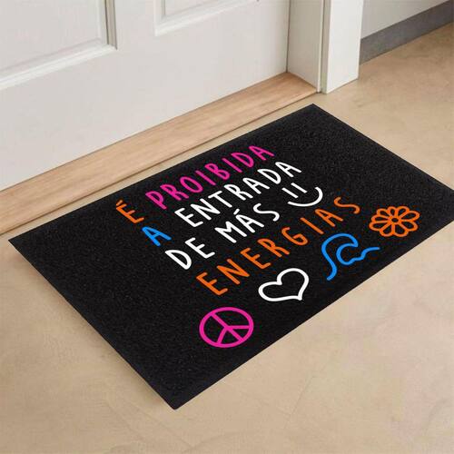 Tapete É Proibida A Entrada De Más Energias 60x40cm Tapete É Proibida a Entrada de Más Energias Tapete decorativo para sua casa. Características: Tamanho: 60 Cm X 40 Cm Material: Vinil Personalização: Pintado Cor Do Fundo: Preto Borda: Rebaixada 2cm Cor Do Logo: Laranja, pink, azul claro, branco Marca: Não Informado Ean: 7908405800283
