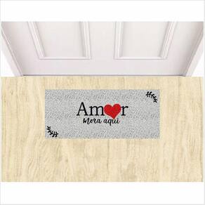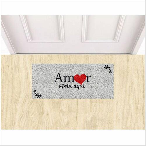 Tapete Emborrachado Amor Mora Aqui 70X30 cm Varias Cores. - Cor: Prata